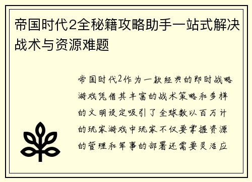 帝国时代2全秘籍攻略助手一站式解决战术与资源难题